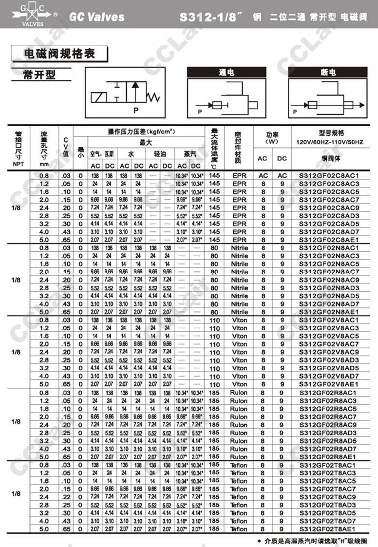S312GF02R8AE1,S312GF02T8AC1,GC Valves S312GF02T8AC3,S312GF02T8AC5,S312GF02T8AC7,S312GF02T8AC9,