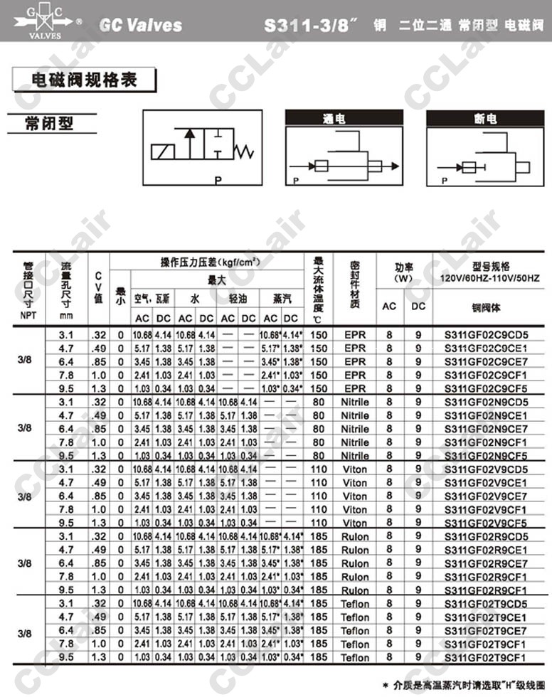 S311GF02C2AC3,S311GF02C2AC5,S311GF02C2AC7,S311GF02C2AC9,GC Valves S311GF02C2AD3,S311GF02C2AD5,