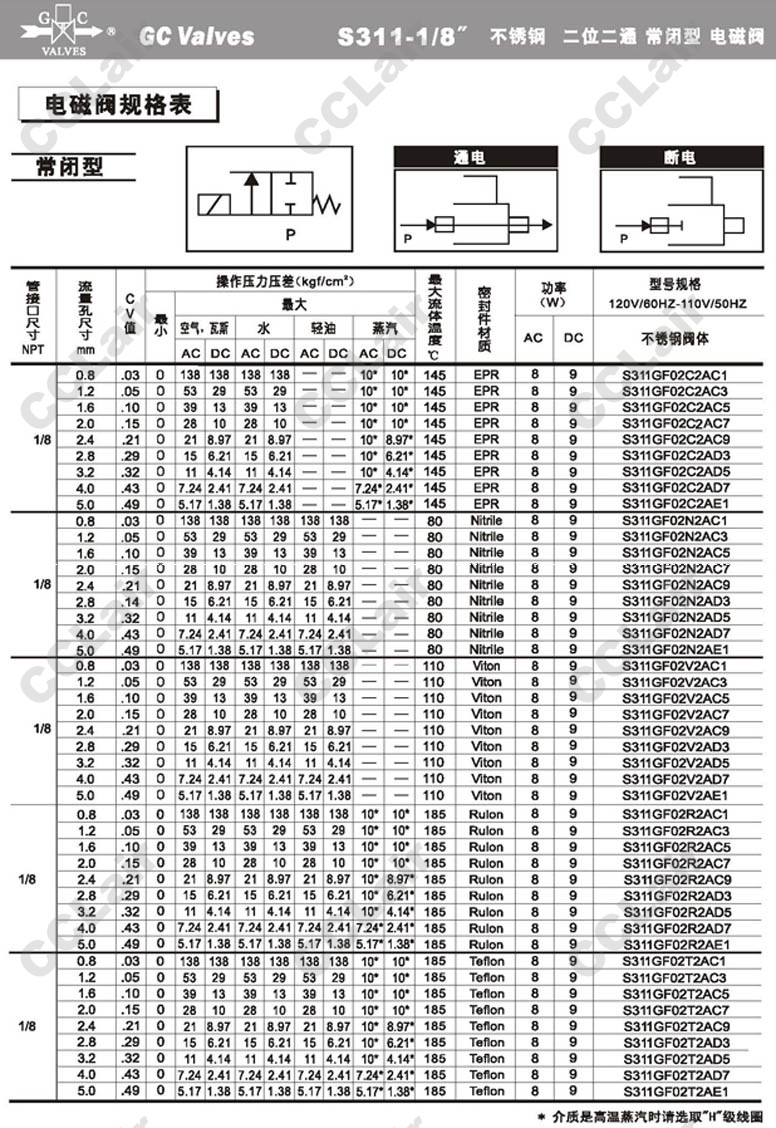 S311GF02C8BE1,S311GF02N8BC1,S311GF02N8BC3,GC Valves S311GF02N8BC5,S311GF02N8BC7,S311GF02N8BC9,
