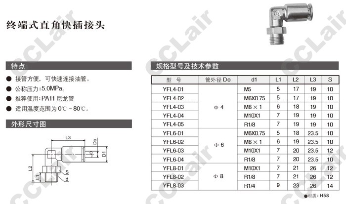 YFL4,YFL6,YFL8,YFL8-01,YFL8-02,YFL4-03,YFL4-04,YFL6-01,YFL6-02,终端式直通快插接头