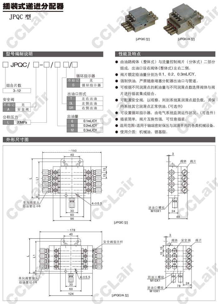 3JPQC,4JPQC,5JPQC,6JPQC,7JPQC,8JPQC,9JPQC,10JPQC,11JPQC,12JPQC,3JPQC/A-L/6SR,插装式递进分配器