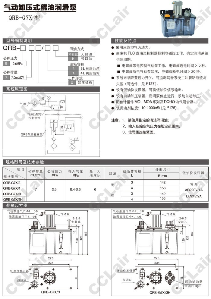 QRB-G7X/3,QRB-G7X/4,QRB-G7X/3H,QRB-G7X/4H,气动卸压式稀油润滑泵