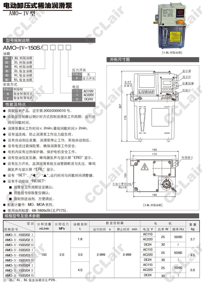 AMO-IV-150S,AMO-IV-150S/02I,AMO-IV-150S/02II,AMO-IV-150S/02III,电动卸压式稀油润滑泵