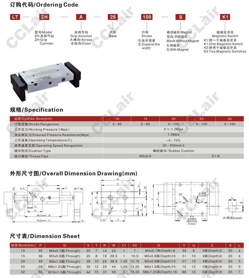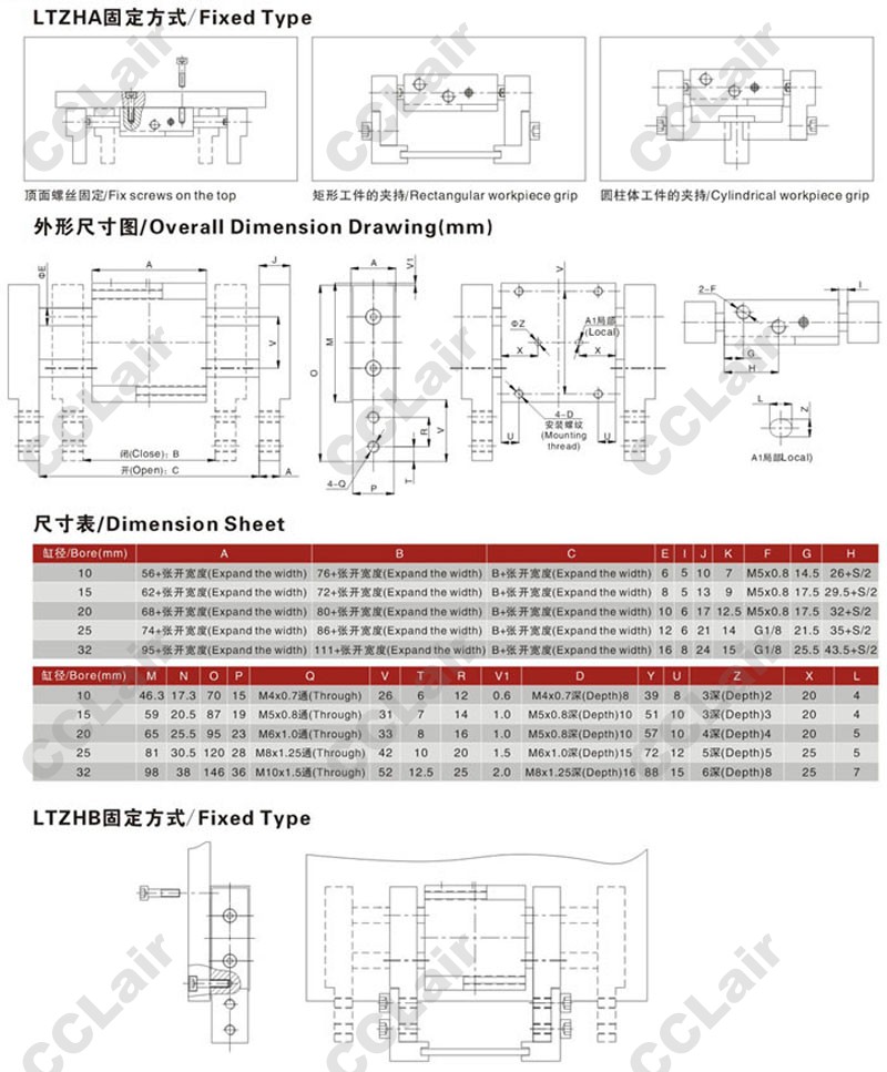 LTZHA-10,LTZHA-15,LTZHA-20,LTZHA25,LTZHA32,LTZHA-32-100,LTZHA32×100,夹持气缸