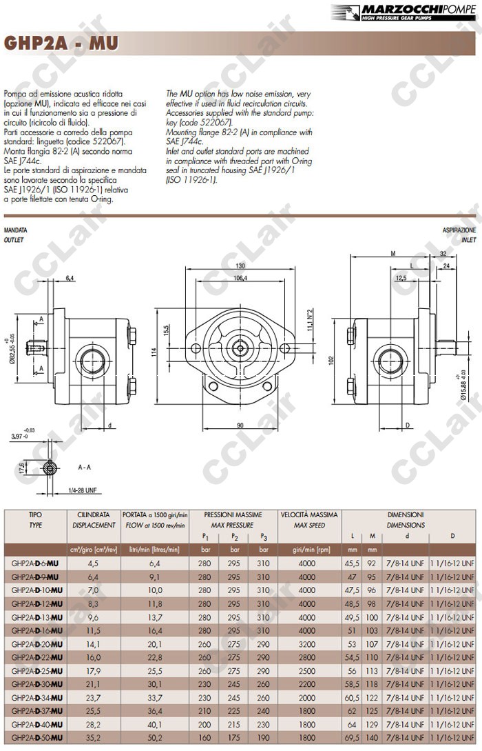 GHP2A-D,GHP2A-D-6-MU,GHP2A-D-9-MU,GHP2A-D-10-MU,GHP2A-D-12-MU,GHP2A-D-13-MU,MARZOCCHI齿轮油泵