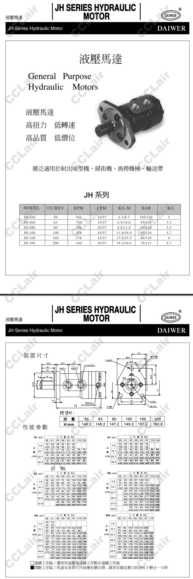 JH-050,JH-060,JH-080,JH-100,JH-160,JH-200,DAIWER液压马达