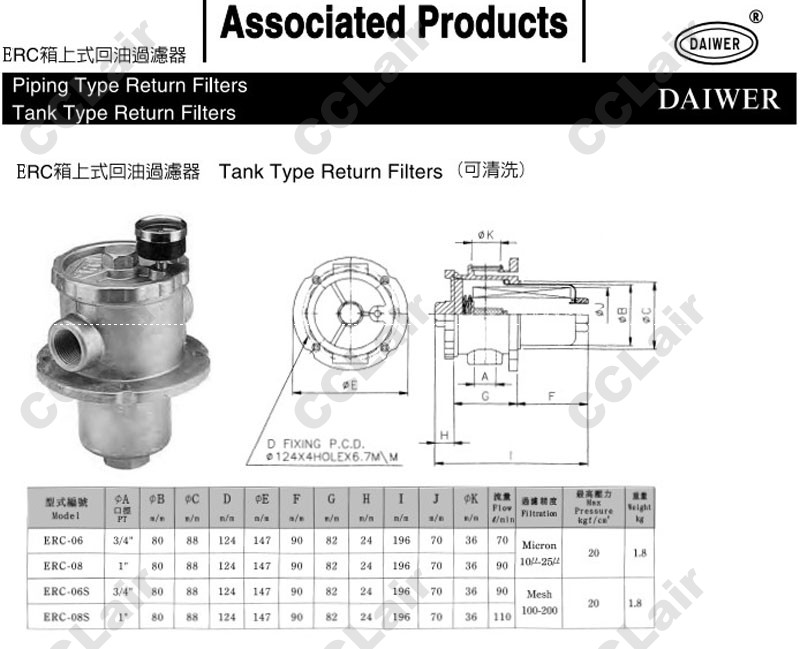 ERC-06,ERC-08,ERC-06S,ERC-08S,DAIWER箱上式回油过滤器