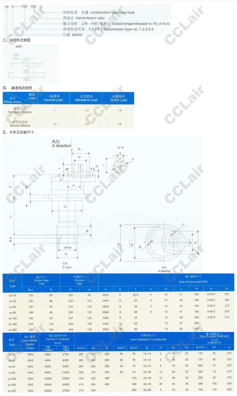 xx-25,xx-40,xx-63,xx-80,xx-100,xx-160,xx-250,回转行星齿轮减速机