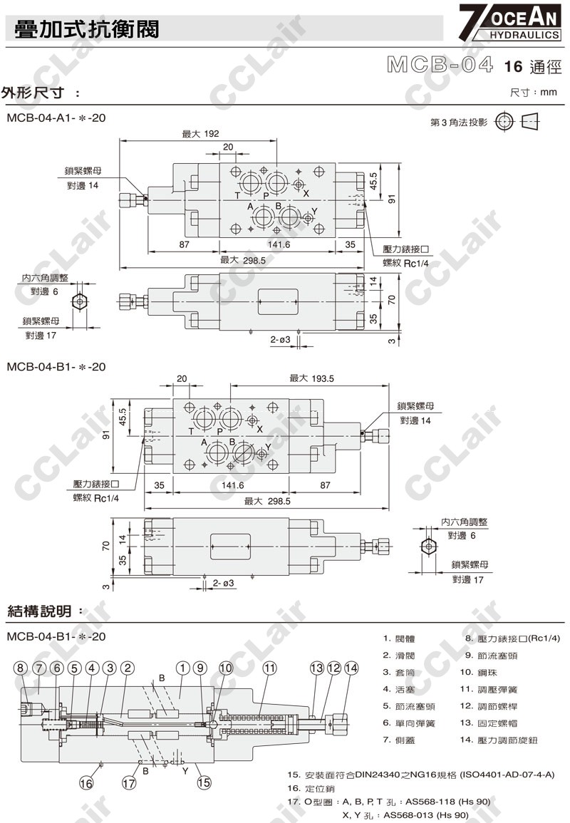 MCB-04-A1,MCB-04-B1,MCB-04-A1-1-10,MCB-04-B1-2-10,MCB-04-B1-1-20,7OCEAN七洋叠加式压力抗衡阀