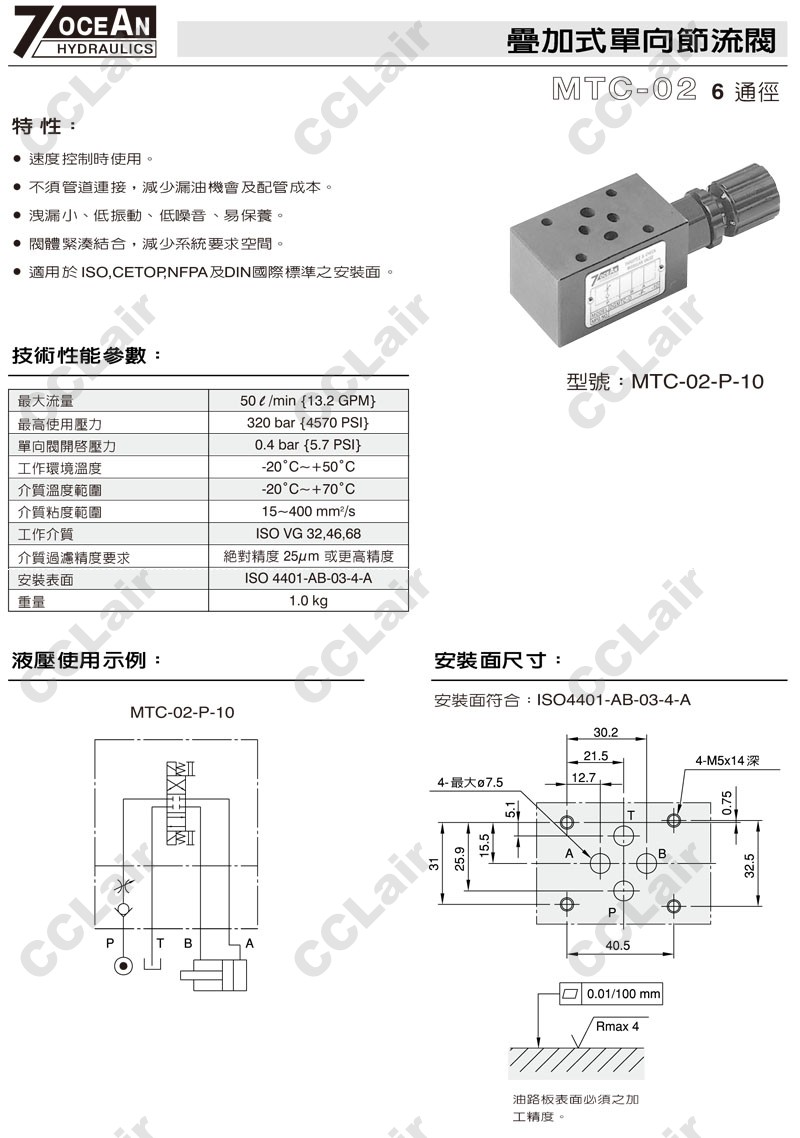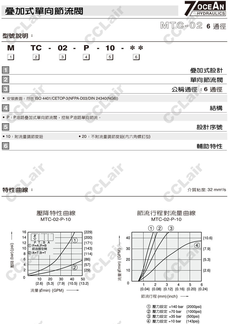 MTC-02-P-10,MTC-02-P-20,7OCEAN七洋叠加式单向节流阀
