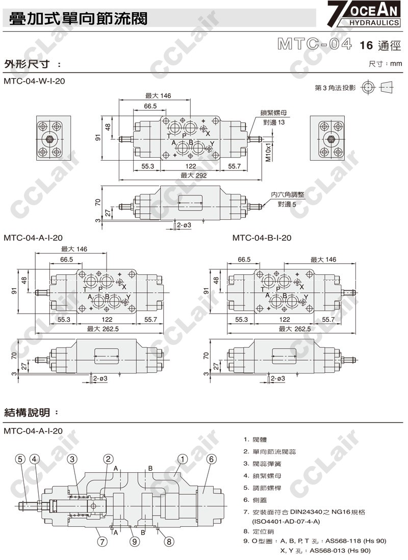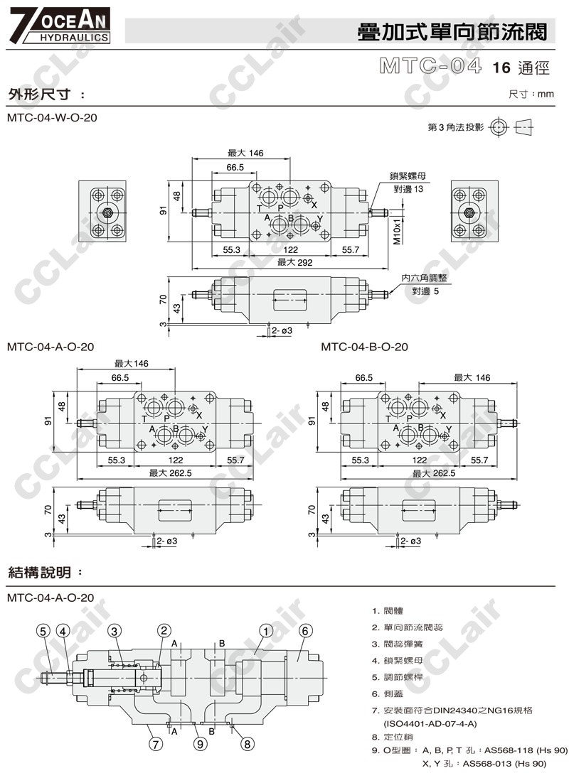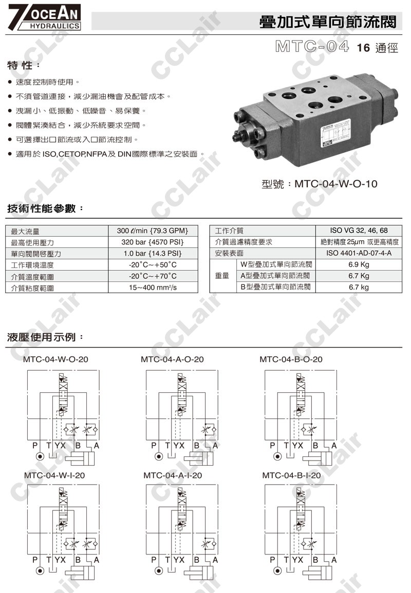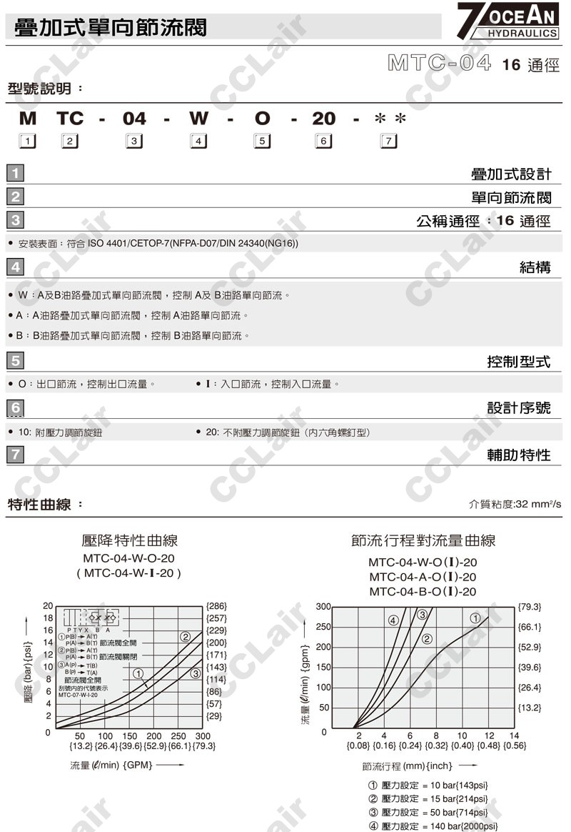 MTC-04-W,MTC-04-A,MTC-04-B,MTC-04-B-I-20,MTC-04-A-I-10,7OCEAN七洋叠加式单向节流阀