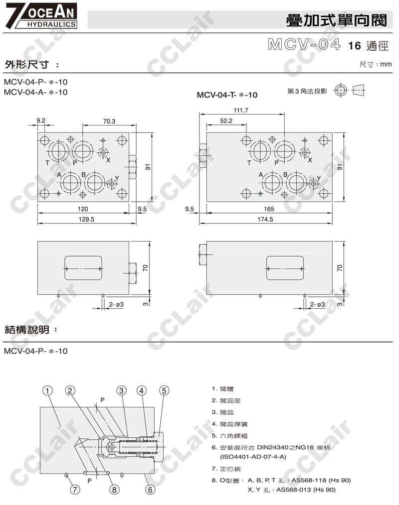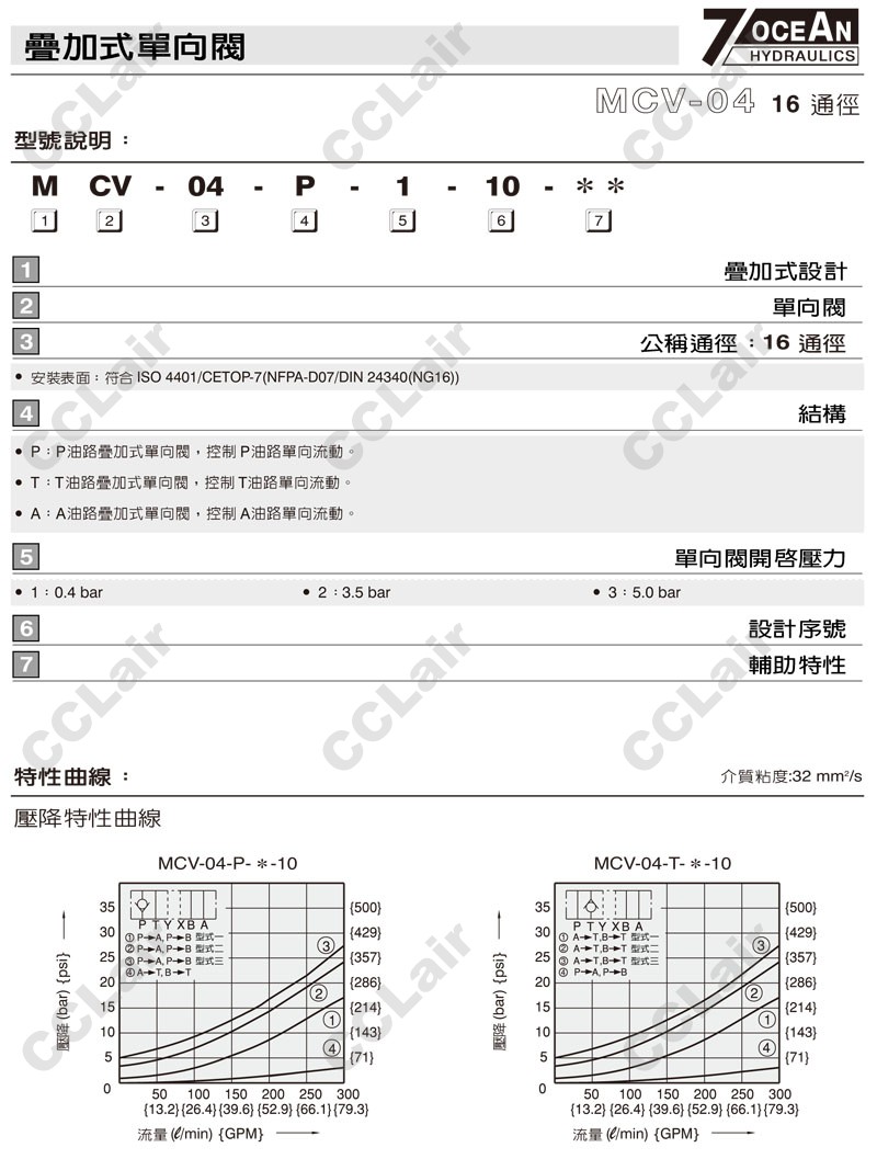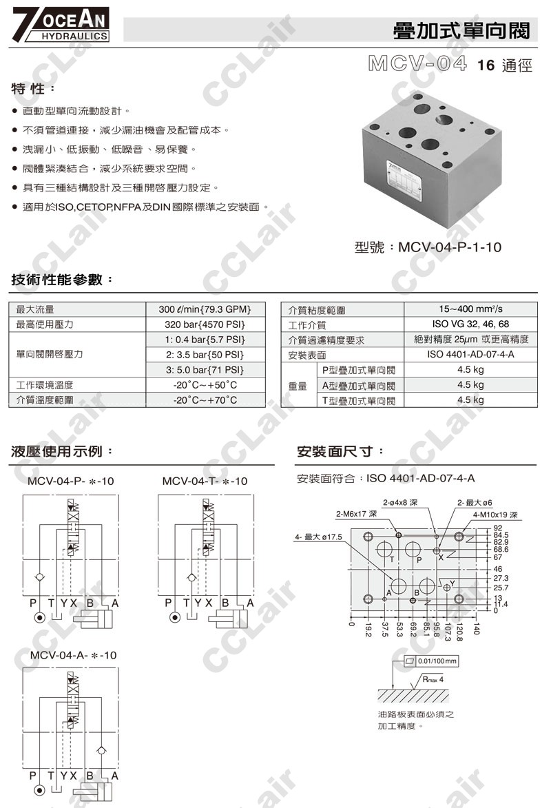 MCV-04-P,MCV-04-T,MCV-04-A,MCV-04-P-3-10,MCV-04-T-1-10,MCV-04-A-2-10,7OCEAN七洋叠加式单向阀