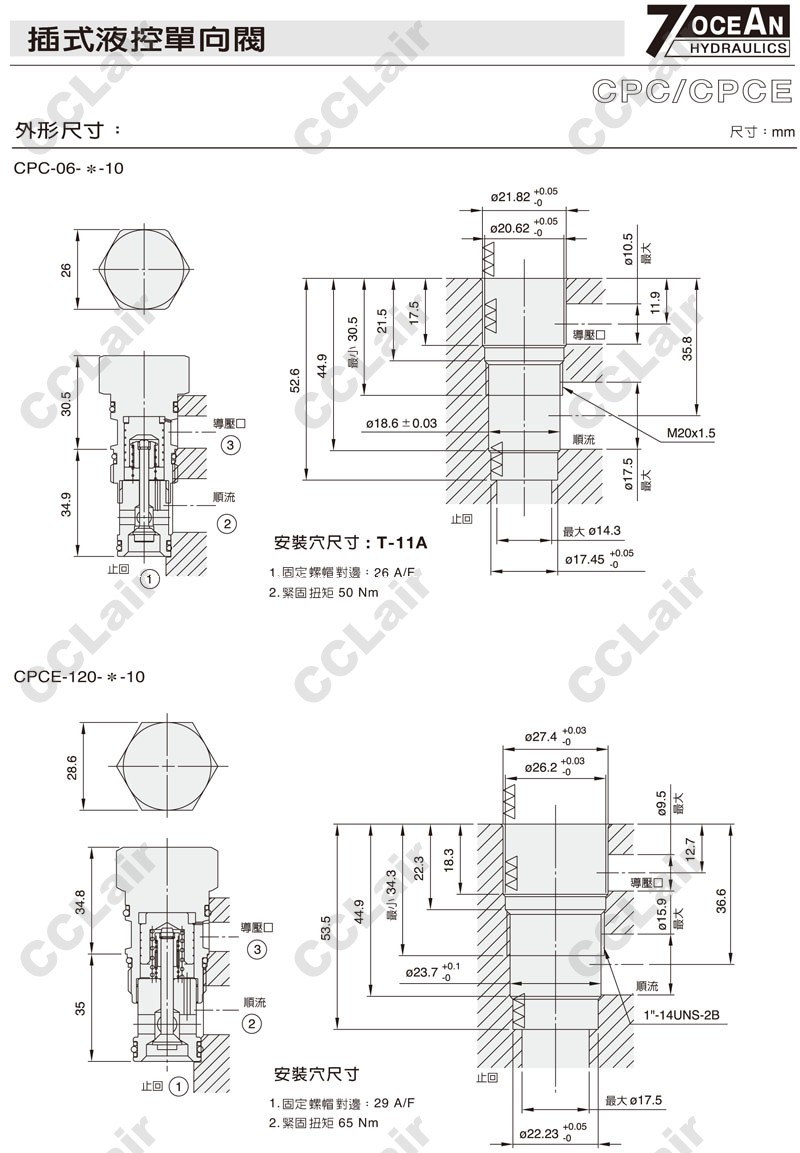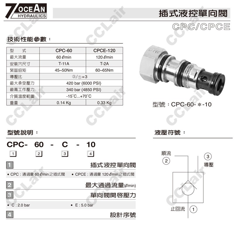 CPC-60-C-10,CPC-60-E-10,CPCE-60-C-10,CPCE-60-E-10,7OCEAN七洋插式液控单向阀