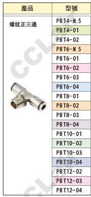 PBT4,PBT6,PBT8,PBT10,PBT12,PBT12-03,PBT10-04,PBT4-M5,PBT6-01,国鹰KUOIN螺纹正三通接头