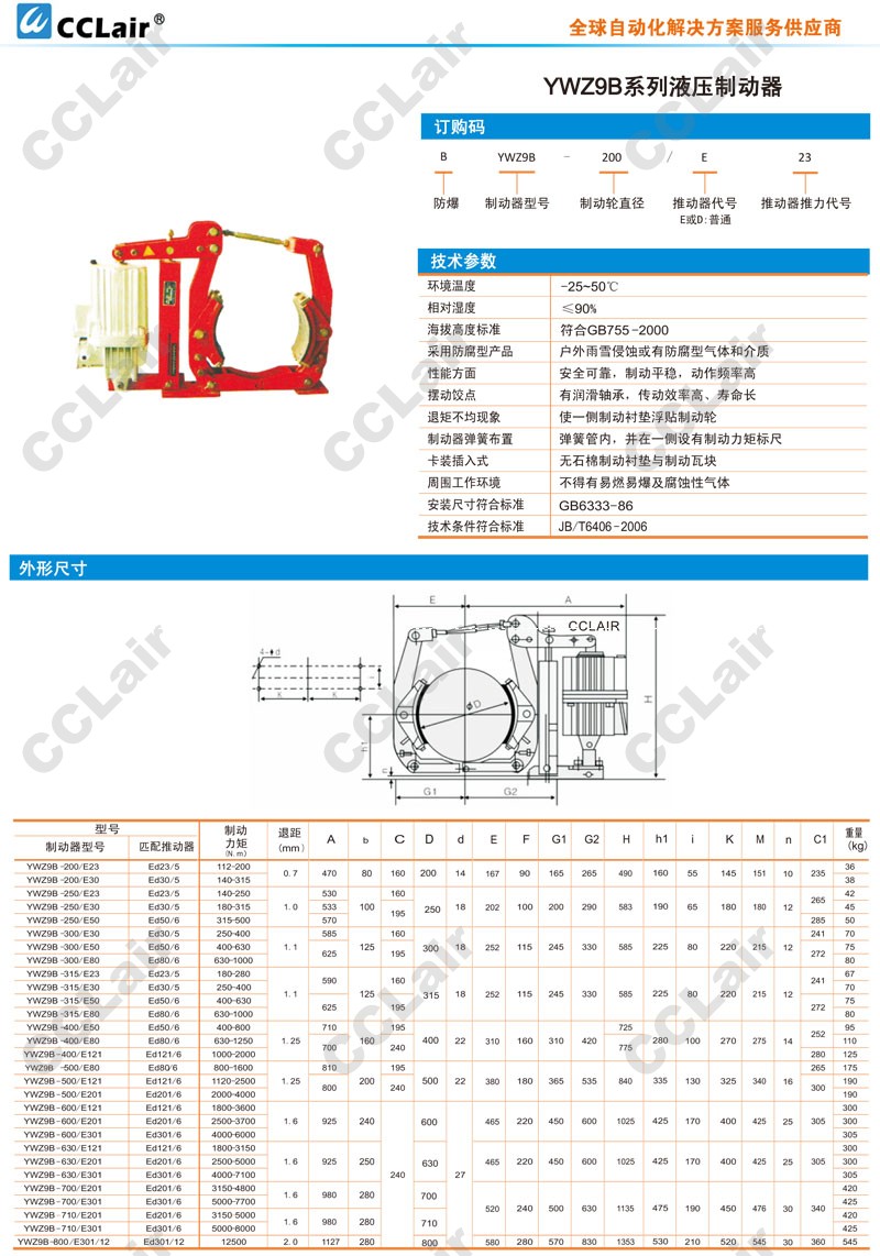 YWZ9B-600/E121,YWZ9B-600/E201,CCLair YWZ9B-600/E301,YWZ9B-630/E121,YWZ9B-630/E201,