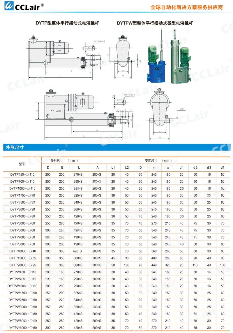 DYTZ450,DYTZ700,DYTZ1000,DYTZ1750,DYTZ2500,DYTZ3000,DYTZ4000,DYTZ5000,整体直式电液推杆