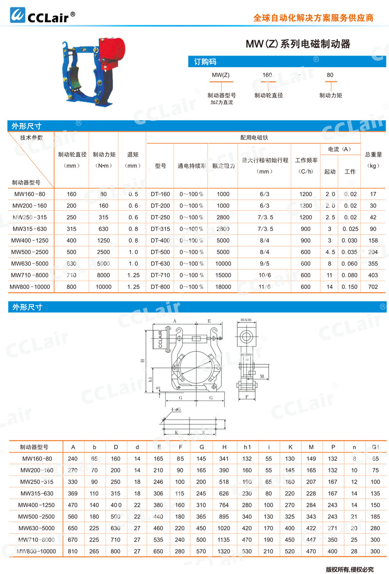 MWZ160,MWZ200,MWZ250,MWZ315,MWZ400,MWZ500,MWZ630,MWZ710,MWZ800,MWZ800-10000,电磁制动器