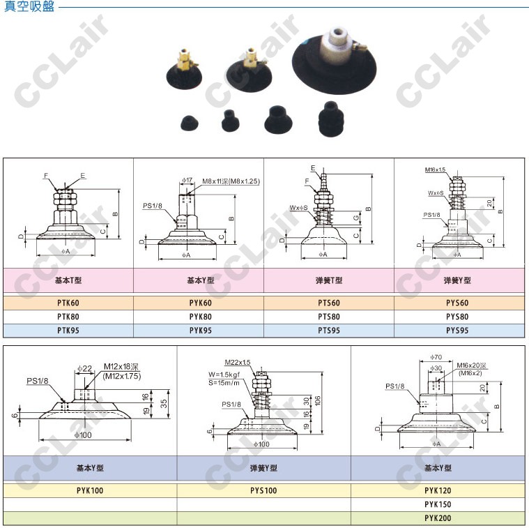 PTK60,PTK80,PTK95,PTS60,PTS80,PTS95,PYS60,PYS80,PYS95,PYS100,国鹰KUOIN真空吸盘