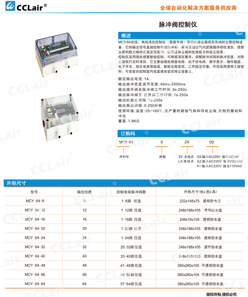 MCY-64-8,MCY-64-12,MCY-64-24,MCY-64-32,MCY-64-40,MCY-64-56,MCY-64-64,RMCY-64脉冲阀控制仪