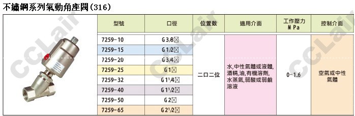 7259-10,7259-15,7259-20,7259-25,7259-32,7259-40,7259-50,7259-65,国鹰KUOIN不锈钢气动角座阀