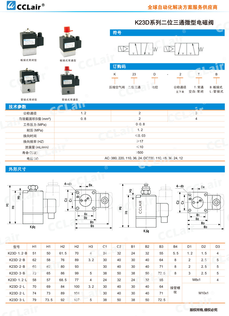 K23D-1.2-B,K23D-2-B,K23D-3-B,K23D-1.2-L,K23D-2-L,K23D-3-L,二位三通微型电磁阀