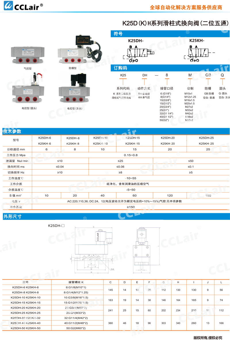 K25DH-6,K25DH-8,K25DH-10,K25KH-6,K25KH-8,K25KH-10,K25DH-15,K25DH-20,二位五通滑柱式气控换向阀
