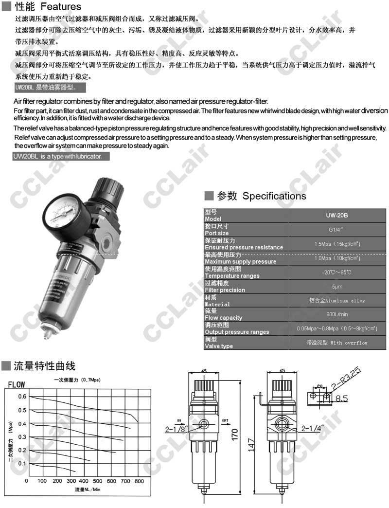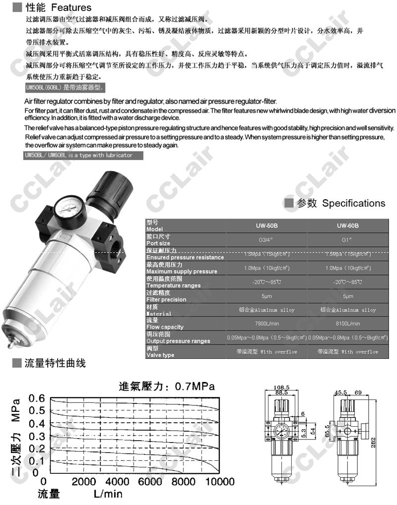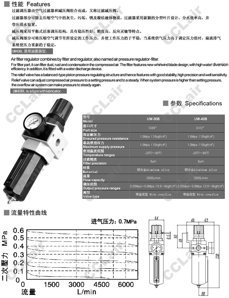 UNIWO,UW-20B,UW-30B,UW-40B,UW-50B,UW-60B,空气过滤减压阀