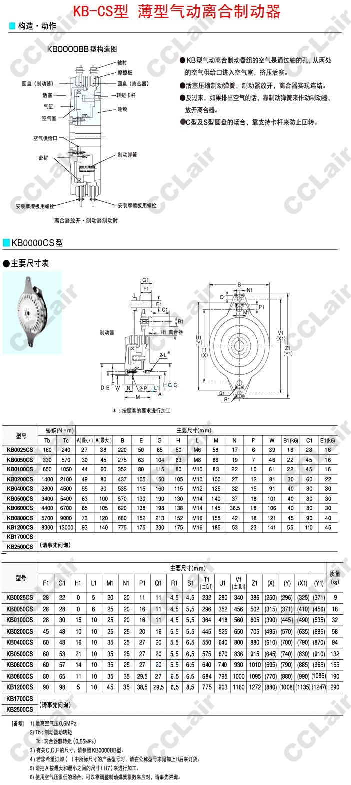 KB0025CS,KB0050CS,KB0100CS,KB0200CS,KB0400CS,KB0500CS,KB0600CS,KB0800CS,KB2500CS,薄型气动离合制动器