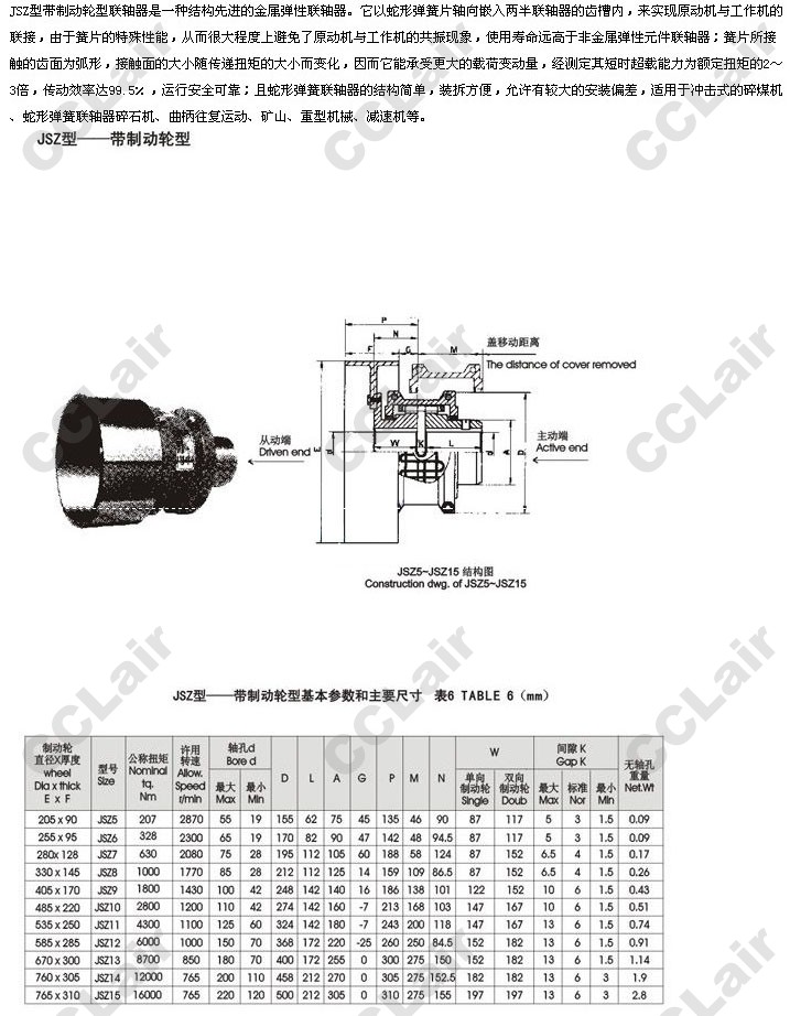 JSZ5,JSZ6,JSZ7,JSZ8,JSZ9,JSZ10,JSZ11,JSZ12,JSZ13,JSZ14,JSZ15,带制动轮蛇形弹簧联轴器