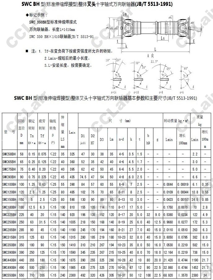 SWC58BH,SWC65BH,SWC75BH,SWC90BH,SWC100BH,SWC120BH,SWC285BH,SWC390BH,SWC440BH,万向联轴器