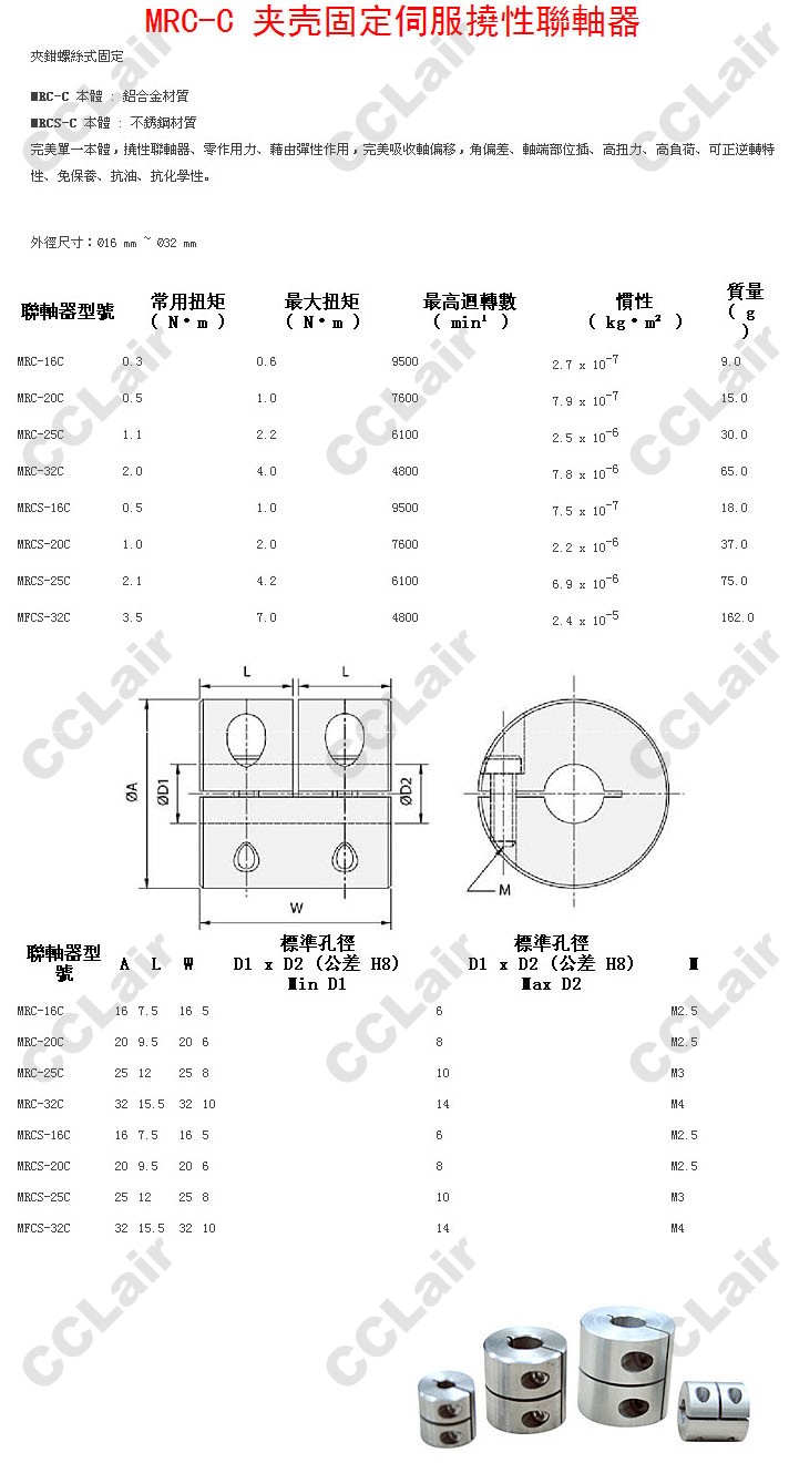 MRC-16C,MRC-20C,MRC-25C,MRC-32C,MRCS-16C,MRCS-20C,MRCS-25C,MRCS-32C,夹紧固定伺服挠性联轴器