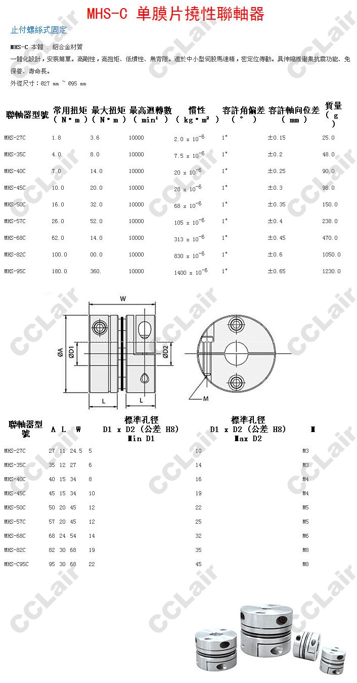 MHS-27C,MHS-35C,MHS-40C,MHS-45C,MHS-50C,MHS-57C,MHS-68C,MHS-82C,MHS-95C,单膜片挠性联轴器