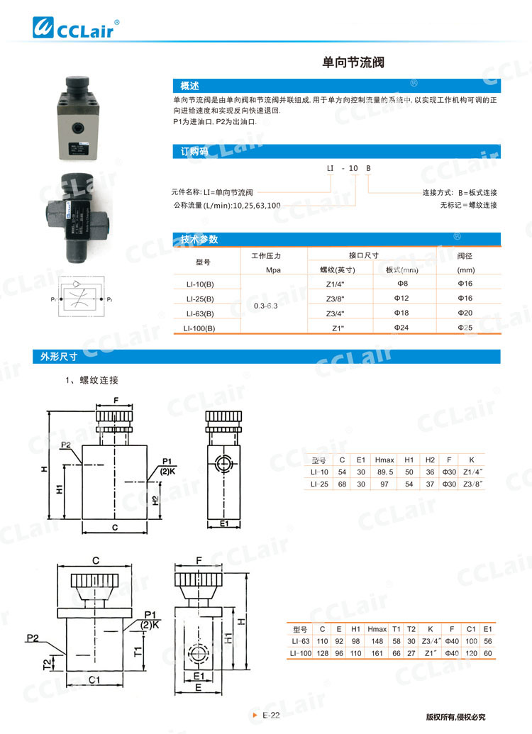 LI-10,LI-25,LI-63,LI-100,LI-10B,LI-25B,LI-63B,LI-100B,单向节流阀