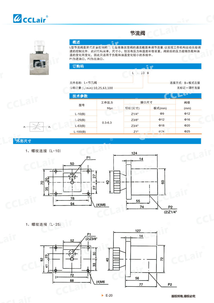 L-10,L-25,L-63,L-100,L-10B,L-25B,L-63B,L-100B,节流阀