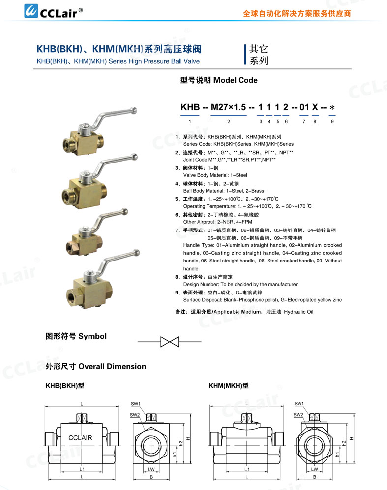 MKH-M12*1.25,MKH-M16*1.5,MKH-M22*1.5,MKH-M27*1.5,MKH-M30*1.5,MKH-M36*2,MKH-M42*2,MKH-M52*2,MKH-M60*2,高压球阀