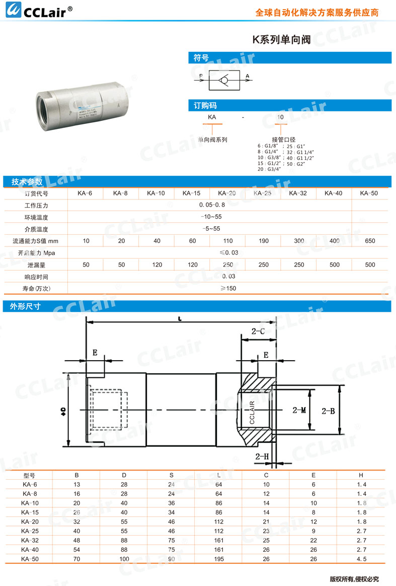 KA-6,KA-8,KA-10,KA-15,KA-20,KA-25,KA-32,KA-40,KA-50,单向阀