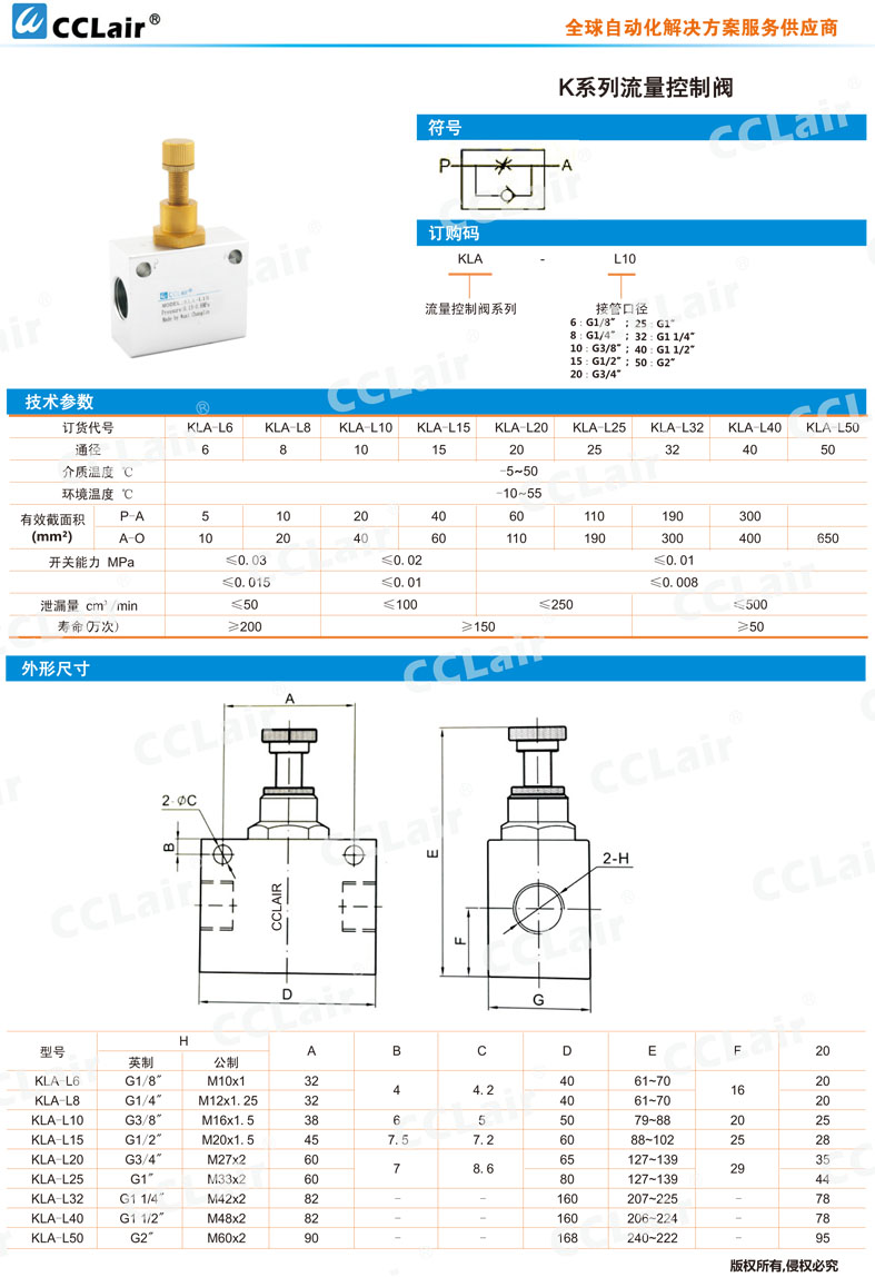 KLA-L6,KLA-L8,KLA-L10,KLA-L15,KLA-L20,KLA-L25,KLA-L32,KLA-L40,KLA-L50,单向节流阀