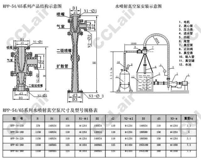 RPP-54-90,RPP-54-110,RPP-54-180,RPP-54-220,RPP-65-280,RPP-65-360,增强聚丙烯水喷射真空泵