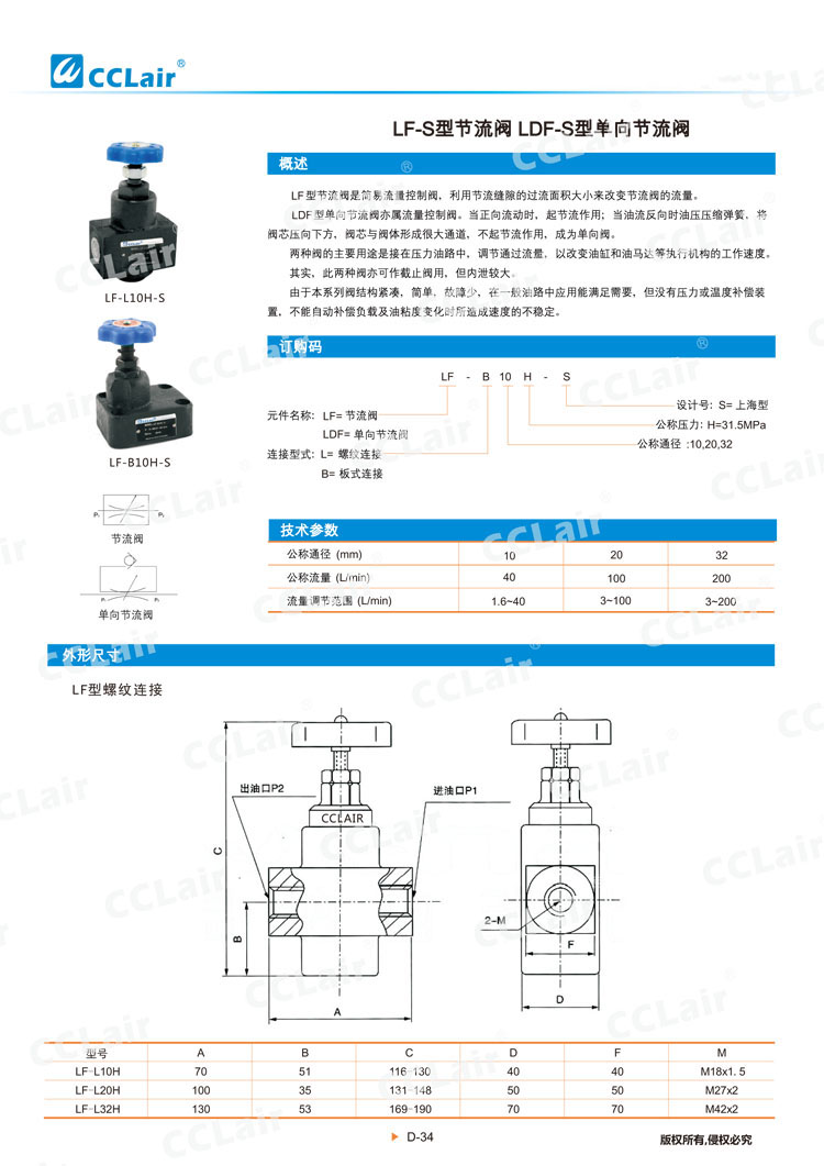 LF-L10H-S,LF-L20H-S,LF-L32H-S,LF-B10H-S,LF-B20H-S,LF-B32H-S,节流阀