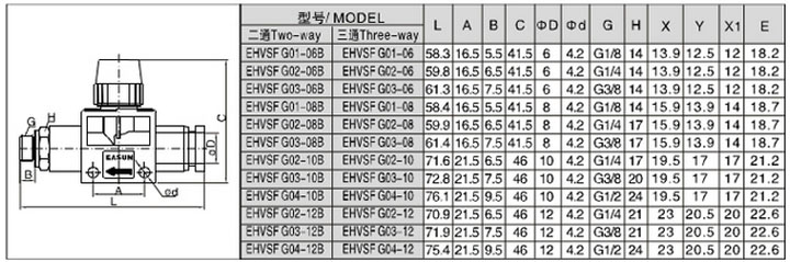 EHVSFG01-06,EHVSFG02-06,EHVSFG03-06,EHVSFG04-10,EHVSFG01-08,空气由插管端流向螺纹端接头
