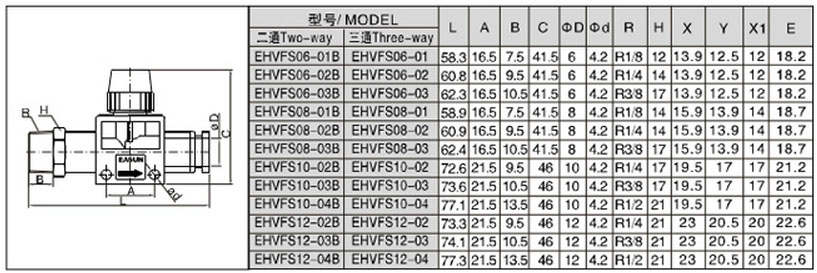 EHVFS06-01,EHVFS08-03,EHVFS10-02,EHVFS12-02,EHVFS06-02,空气由螺纹端流向插管端接头