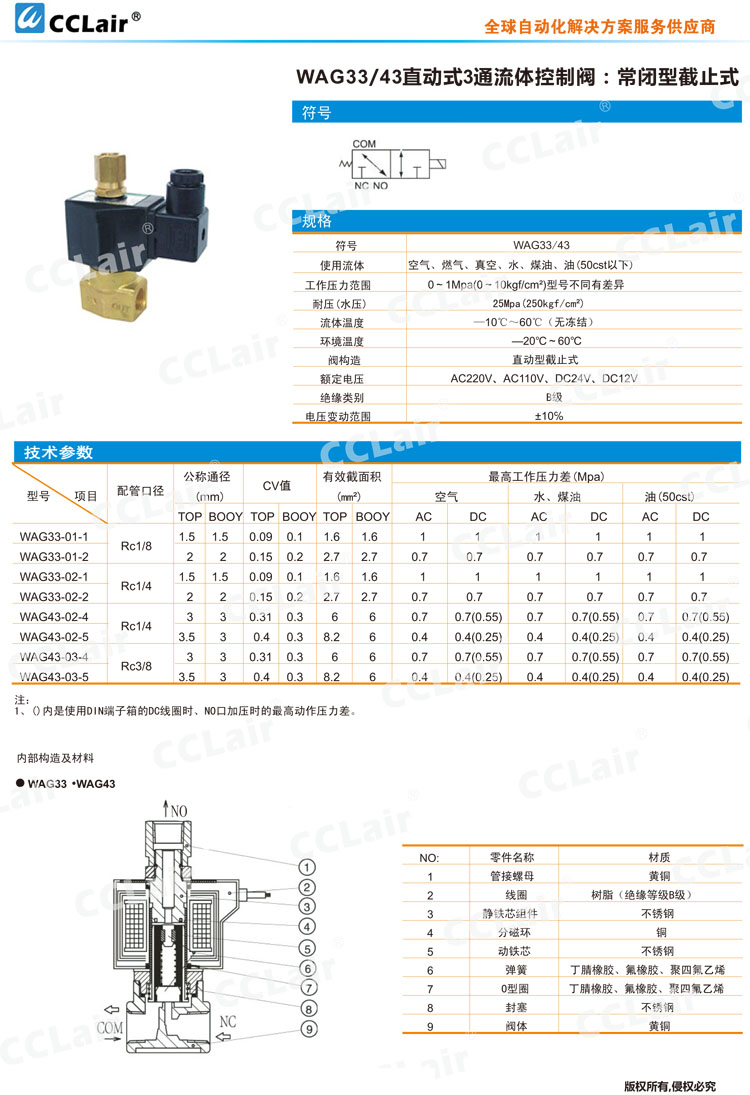 WAG33-01-1,WAG33-01-2,WAG33-02-1,WAG33-02-2,WAG43-02-4,WAG43-02-5,WAG43-03-4,WAG43-03-5,流体控制阀