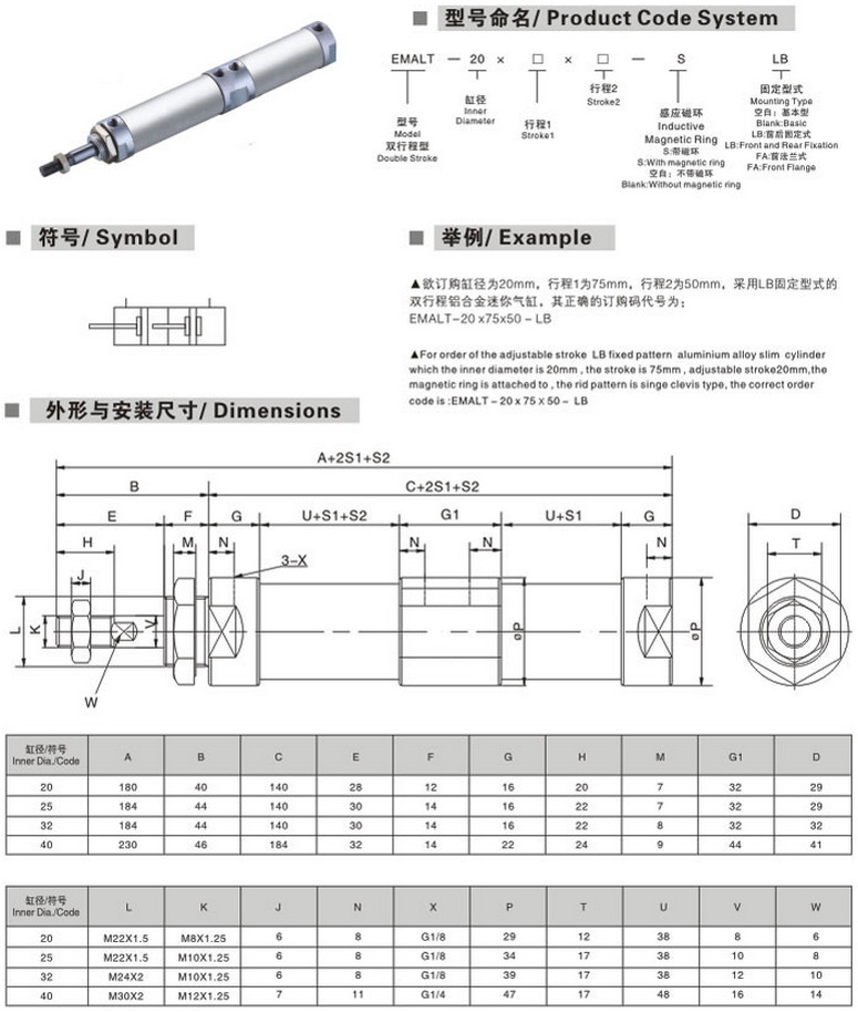 EMALT-20*75*50,EMALT-25*75*50,EMALT-32*75*50,EMALT-40*75*50,铝合金迷你气缸