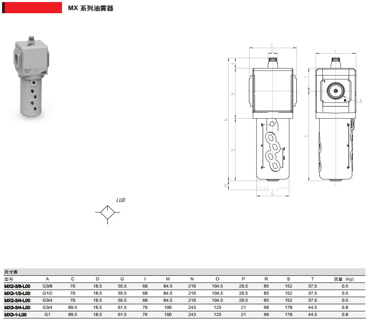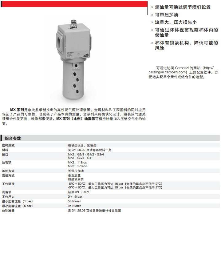 MX2-3/8-L00,MX2-1/2-L00,MX2-3/4-L00,MX3-3/4-L00,camozzi油雾器