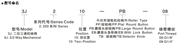 ▲ 欲订购接管螺纹为1/4",旋钮式二位三通的3J2系列控制阀,其正确的订购码为:3J210-TB-08