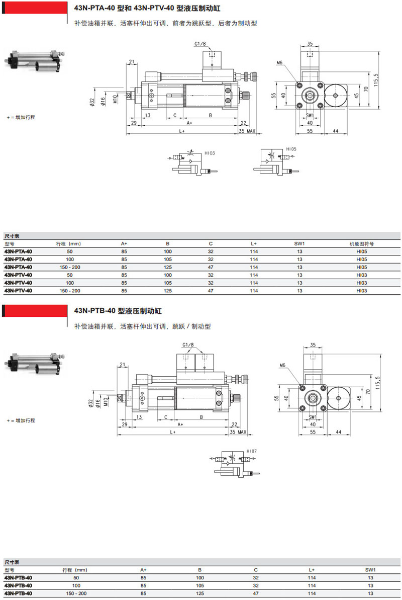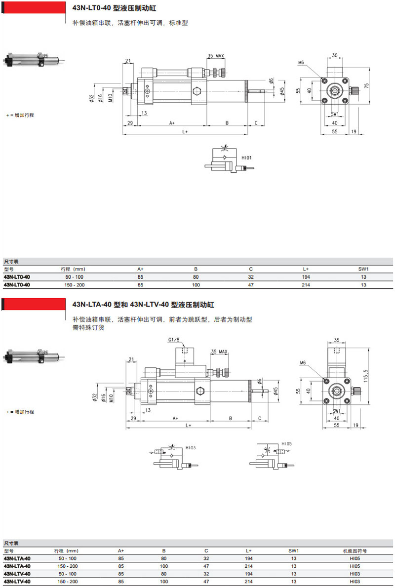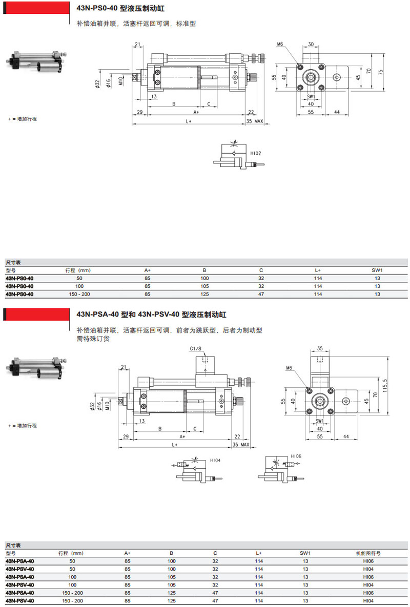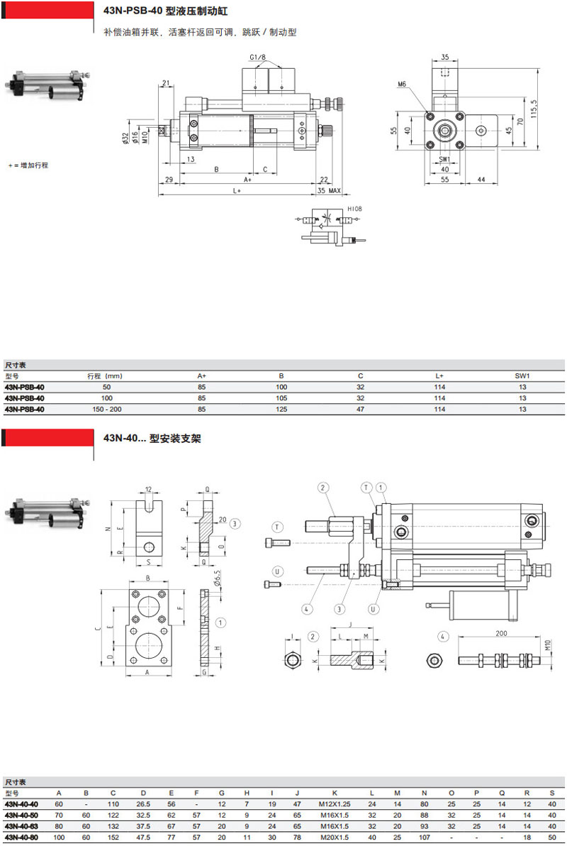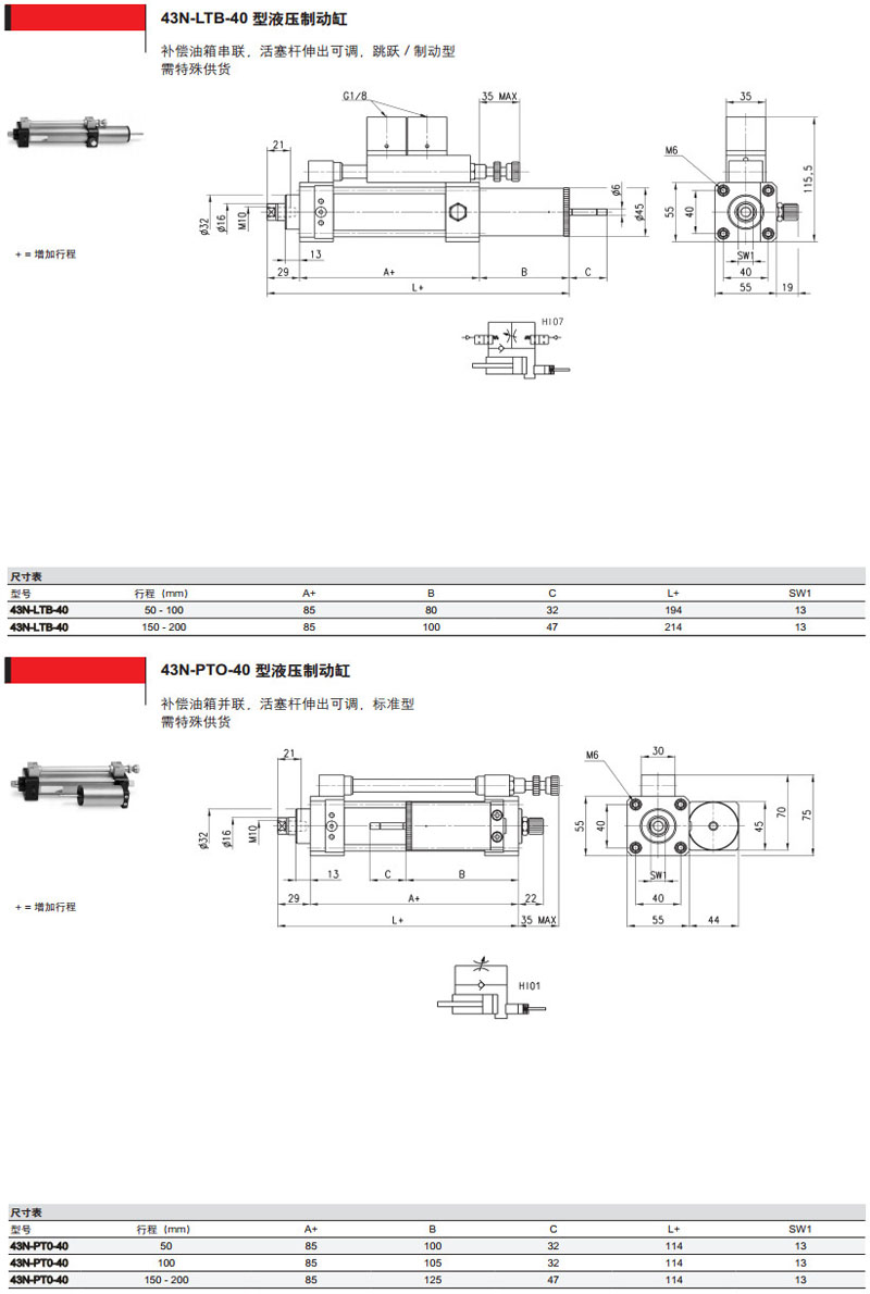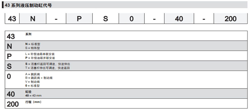 43N-LSA-40-200,43S-LTB-40-200,43N-PSV-40-200,43S-PT0-40-200,camozzi液压制动缸