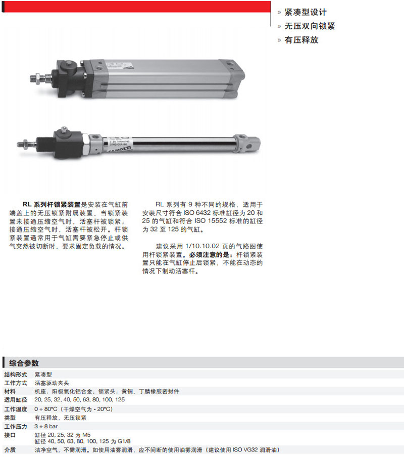 RLC-24-20,RLC-41-25,RLB-24-32,RLB-41-40,RLC-24-50,RLC-41-63,camozzi杆锁紧装置