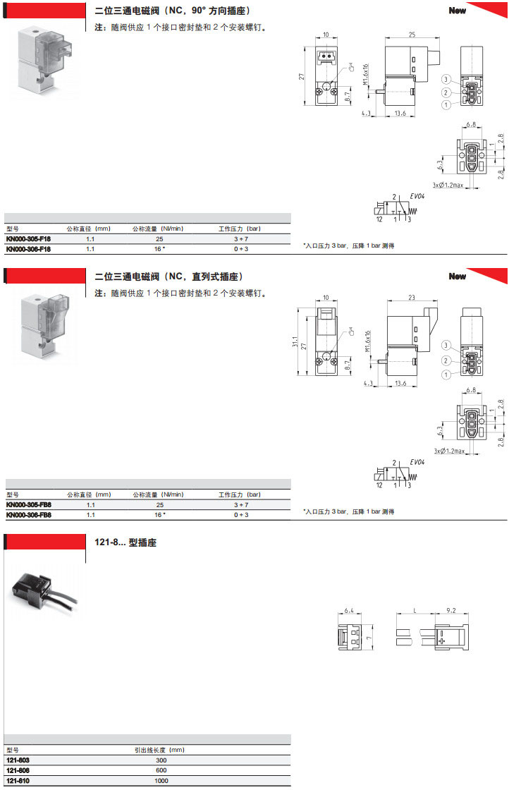 KN000-305-F12,KN000-306-F18,KN000-305-F22M,KN000-306-F28M,camozzi直动式大流量微型电磁阀