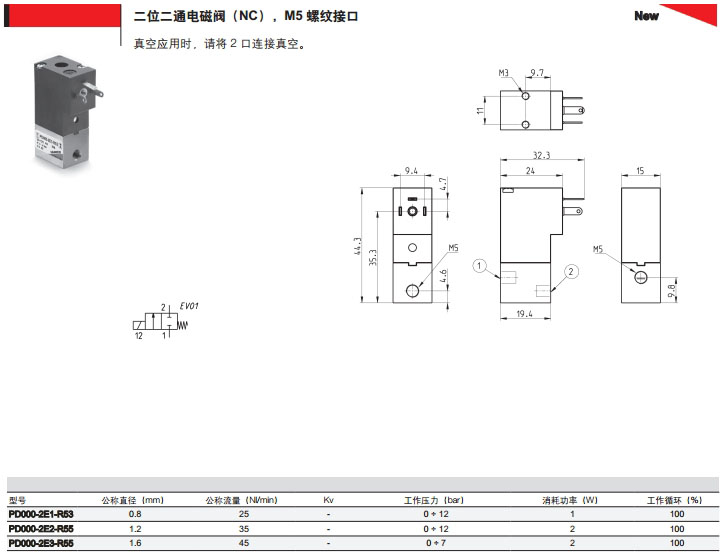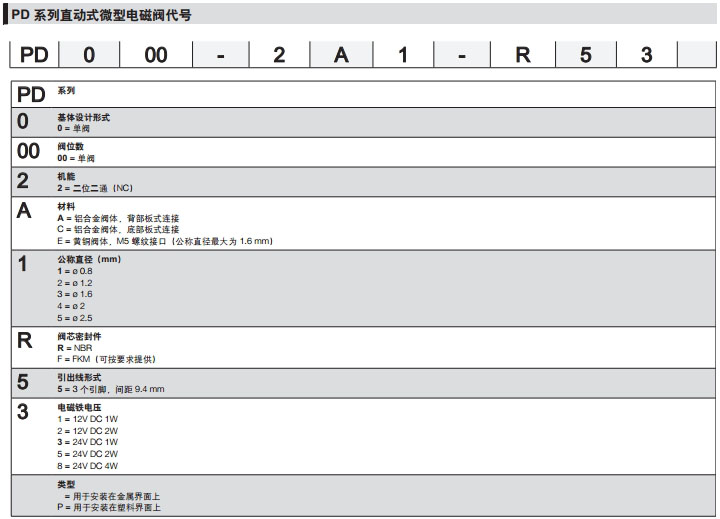 PD000-2A1-R51,PD000-2A5-F52,PD000-2E1-R53,PD000-2A2-R55,camozzi直动式微型电磁阀