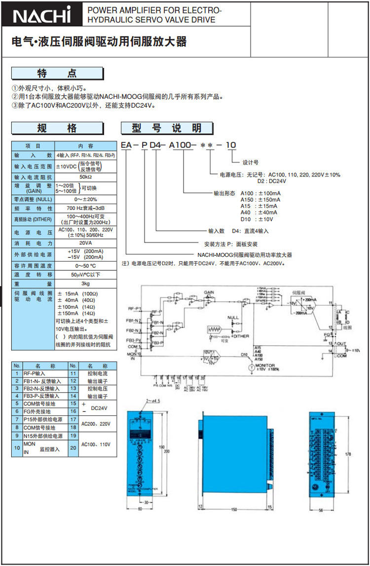 EA-PD4-A100-10,EA-PD4-A150-10,EA-PD4-A15-10,EA-PD4-A40-10,EA-PD4-D10-10,NACHI伺服放大器